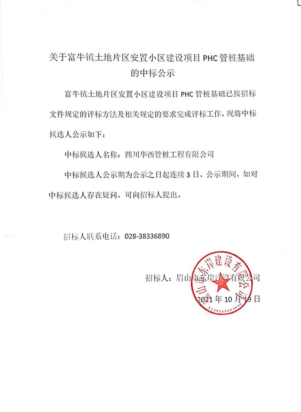 富牛鎮(zhèn)土地片區(qū)安置小區(qū)建設(shè)項(xiàng)目PHC管樁基礎(chǔ)項(xiàng)目中標(biāo)公示